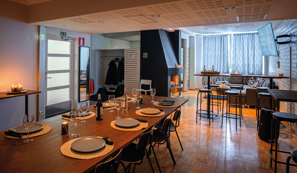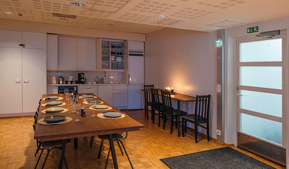 - Oleskelutilat: iso pöytäryhmä, runsaasti istumapaikkoja